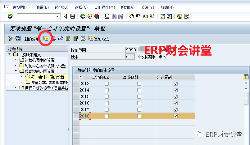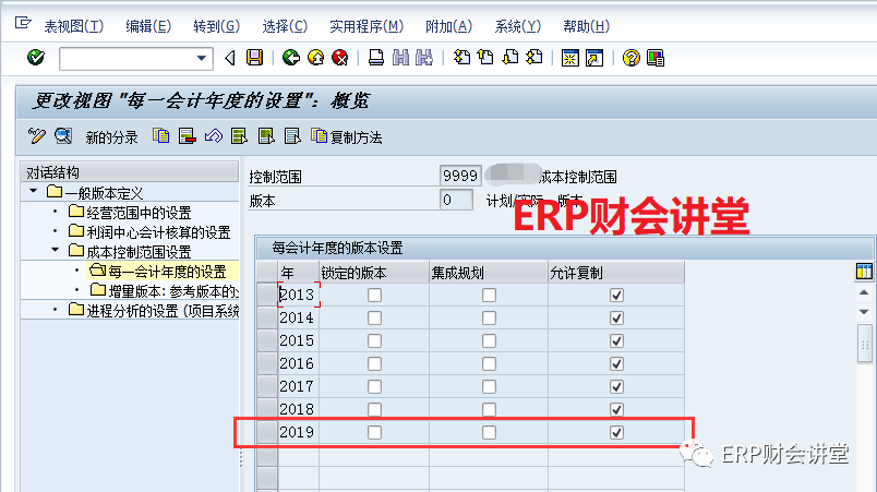 2)CO版本的有效期设定:CO版本是对每一年度有效的,新的会计年度需要重新设定,事务代码OKEQ。