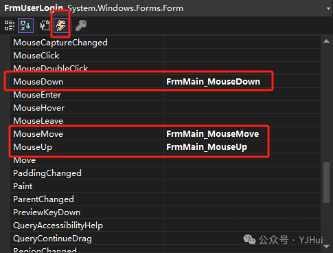 将窗体事件与以上方法相关联即可,同样的如果想拖动窗体上的按钮或者图片也要实现窗体移到的话,将其事件也进行关联即可。