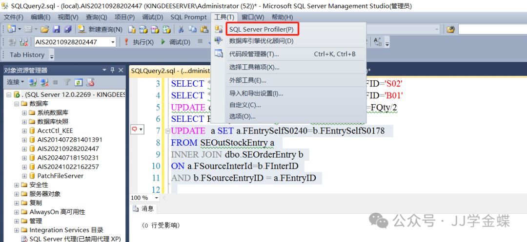 1.2、打开SQL管理工具 SQL Server Management Studio。点击工具--SQL Server profiler。