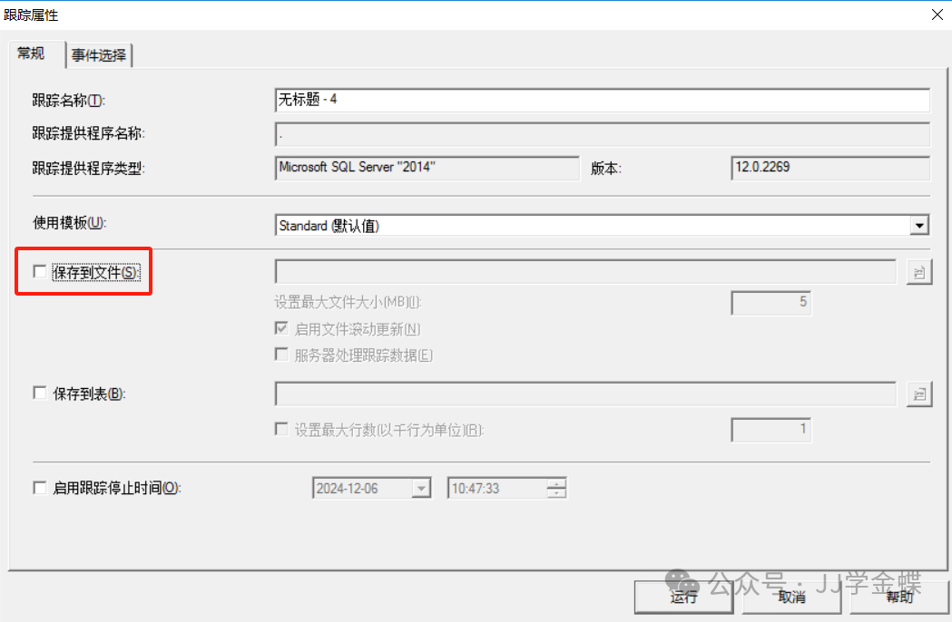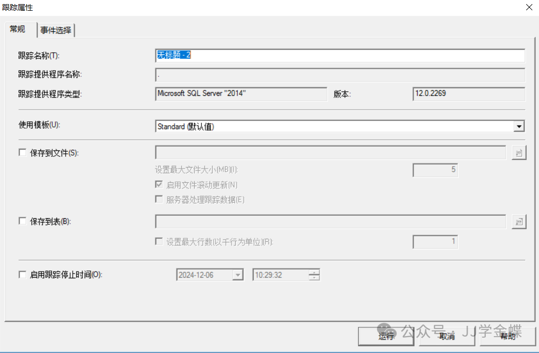 二、工具的使用 常规窗口: 设置跟踪的名称和,勾上保持到文件,选择好文件存放的路径,注意设置最大文件大小根据需要进行设置,也可以设置跟踪停止的时间。