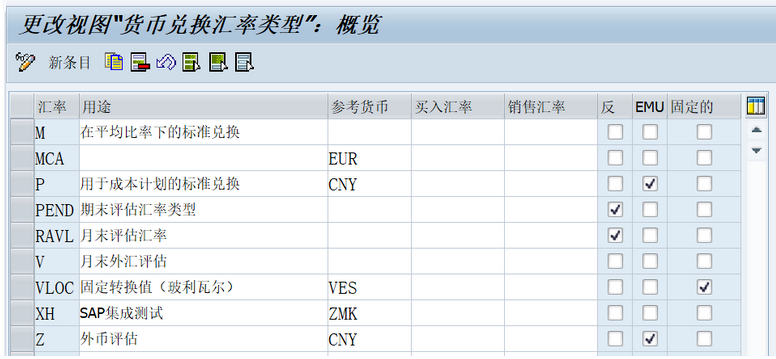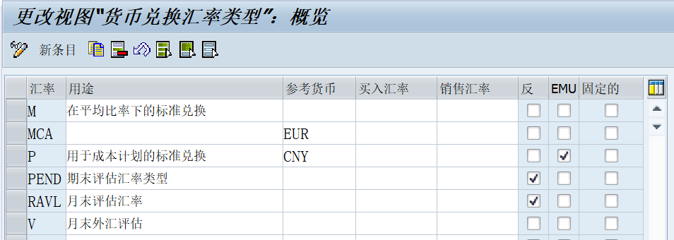 IMG->SAP NetWeaver->常规设置->货币->检查交换率类型(OB07)