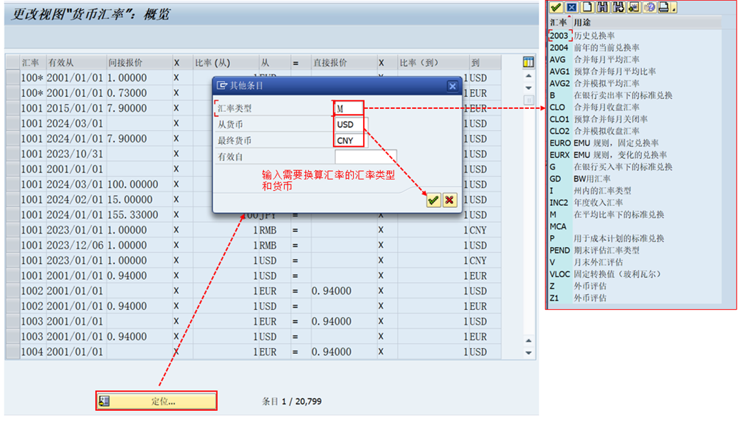- 汇率:就是汇率类型,比如,M: 用于记账 P: 用于成本计划的换算。