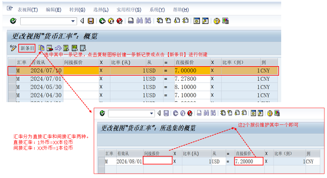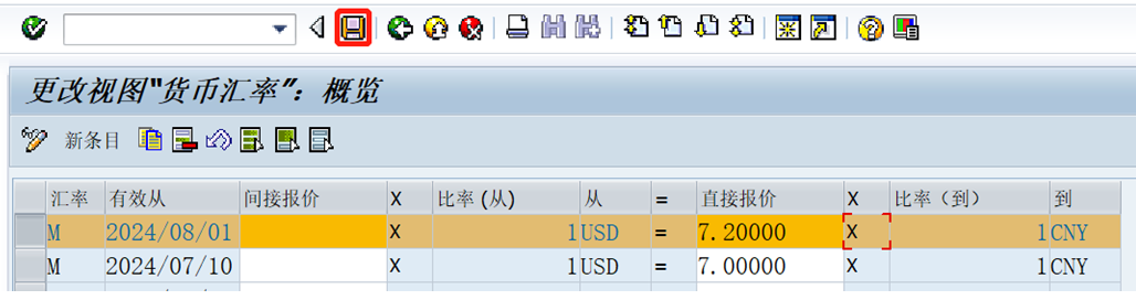 声明:本文仅代表作者观点和立场,不代表任何公司!仅用于SAP软件应用学习参考。使用SAP的企业一般都有对外贸易业务,因此,不可避免地会涉及外币核算,由于汇率变动非常频繁,如果每一笔记账都按实时汇率录入,则工作量很大,所以SAP系统解决方案是定期把最新汇率维护在系统内,做外币相关的业务时候系统会自动取到最新的汇率,不需要手工录入(比如如下)。