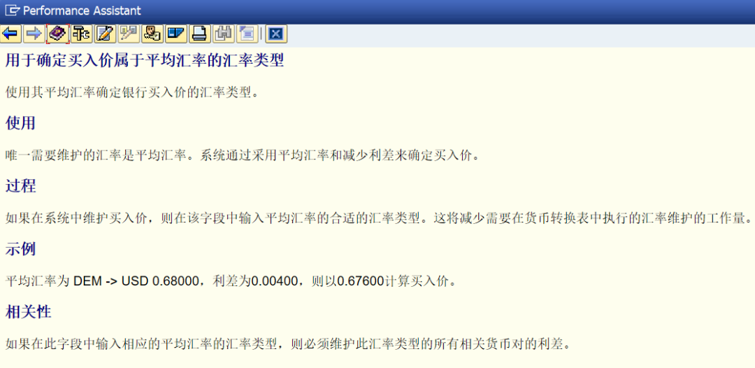 在讲解维护汇率操作之前,需要先了解下汇率类型的概念,SAP系统预设了不同的汇率类型,用于不同的业务(如下图)。