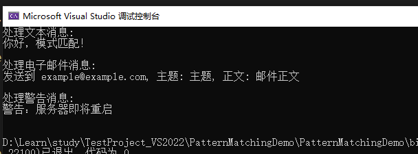 接下来,在Program.cs 文件中使用模式匹配处理不同类型的消息