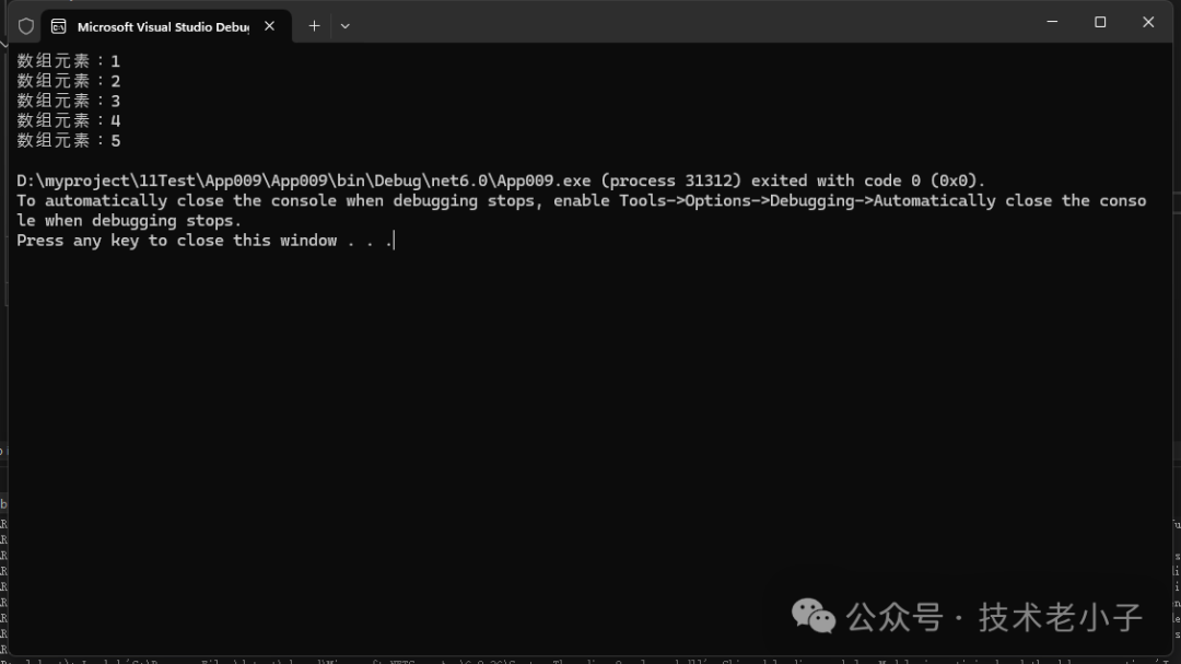Console.WriteLine("数组元素:" + array[i]);