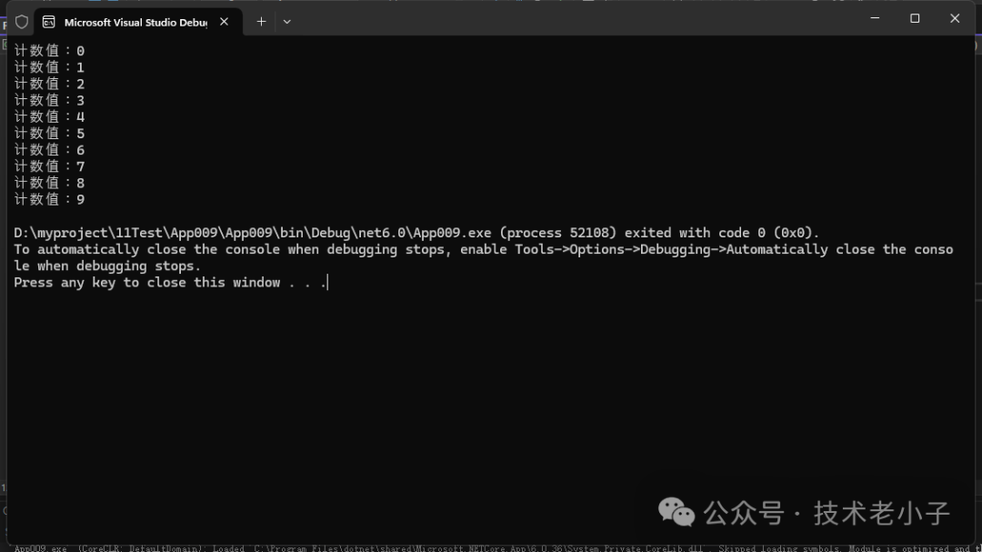 Console.WriteLine("计数值:" + i);