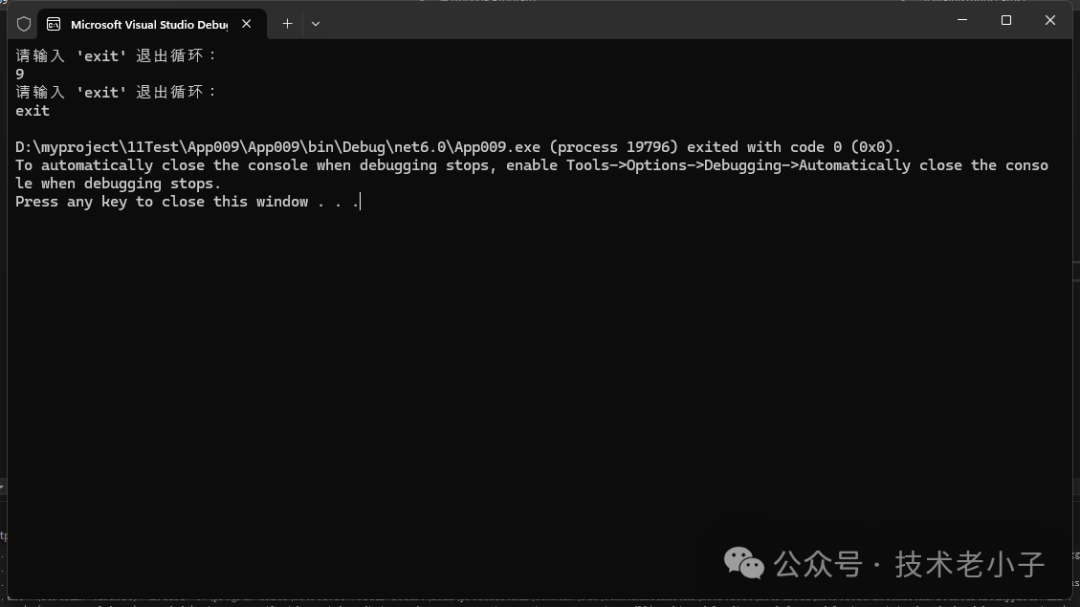 Console.WriteLine("请输入 'exit' 退出循环:");