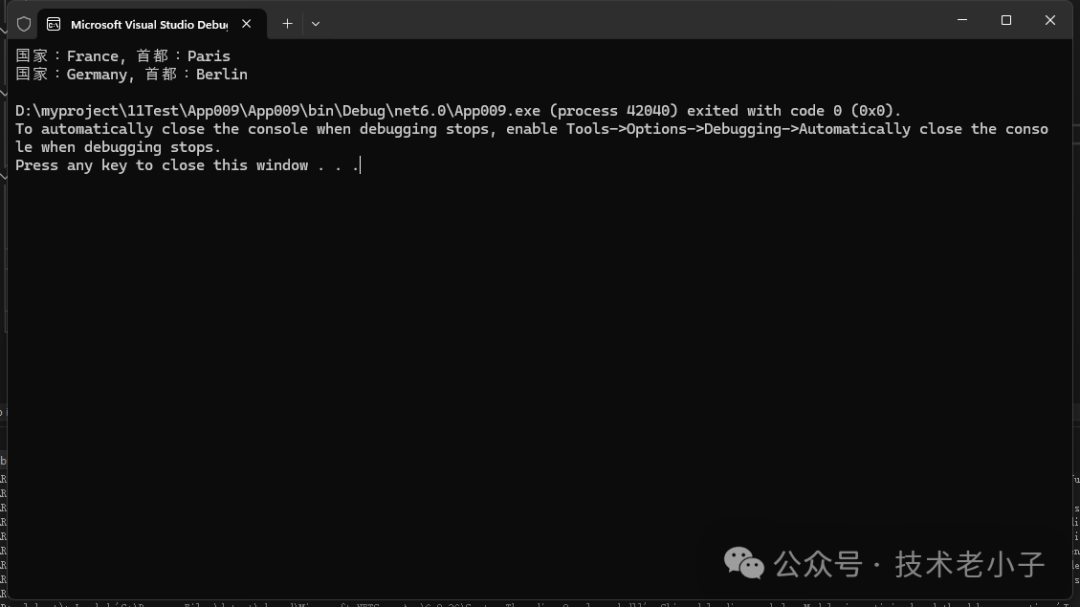 Console.WriteLine("国家:" + item.Key + ", 首都:" + item.Value);