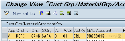 当然也可以只按物料组或只按客户组来分收入科目 或者不区分客户/物料,只按记账码来划分 价格ERL 折扣ERS 运费ERF