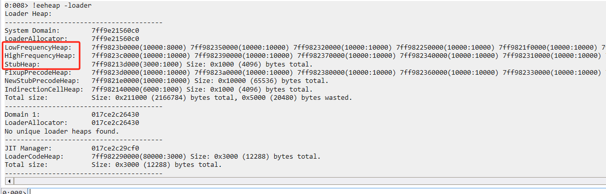 StubHeap CodeHeap VirtualCallStubHeap 使用!eeheap -loader可以查看
