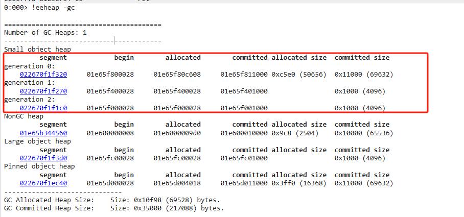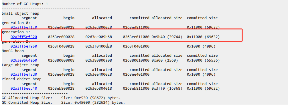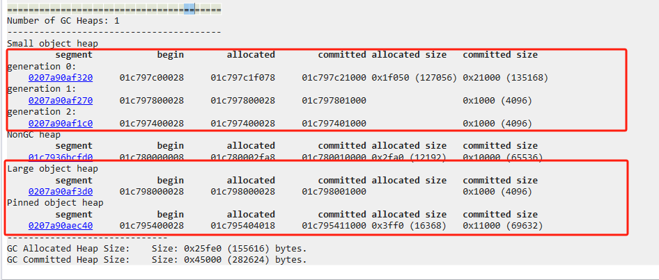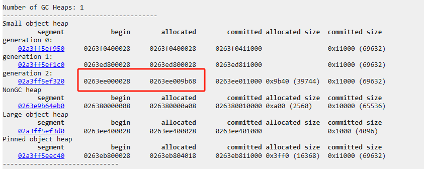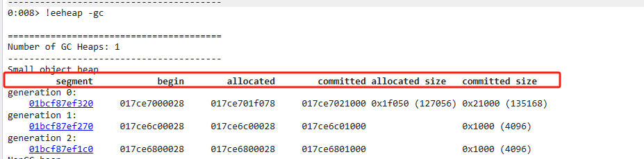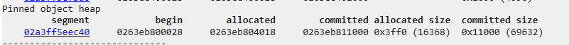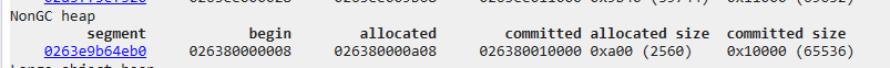 segment begin allocated committed allocated size committed size 段指针的对象地址 内存分配的起始点 内存分配的末尾点 已提交的分配大小 已提交的大小