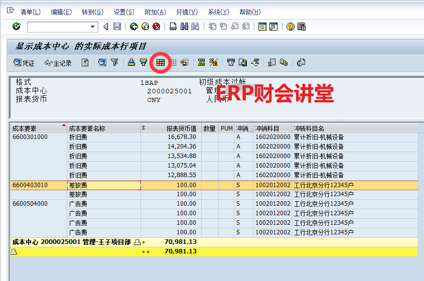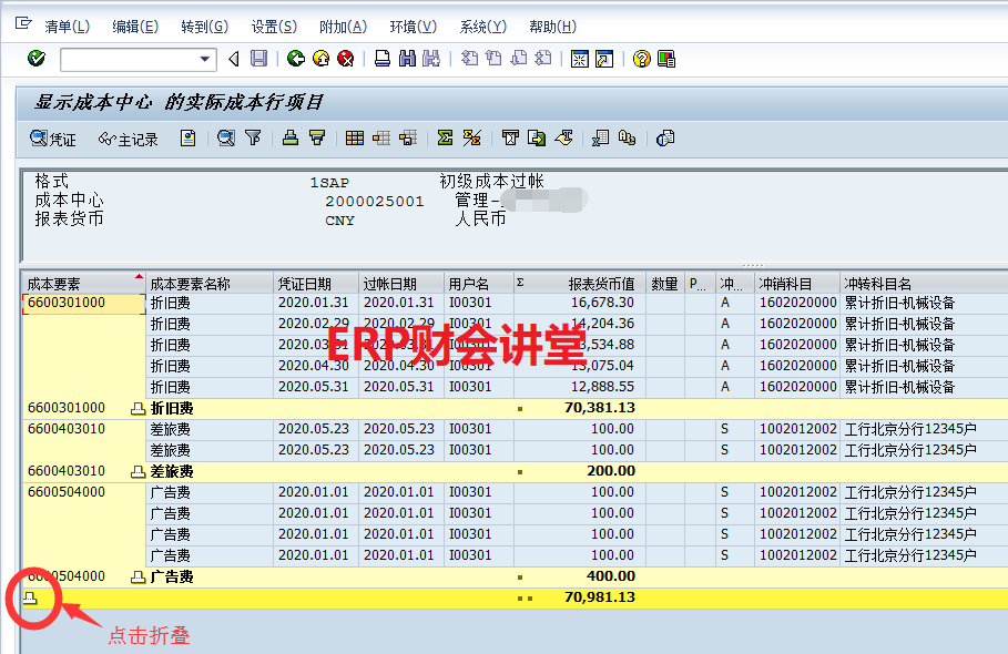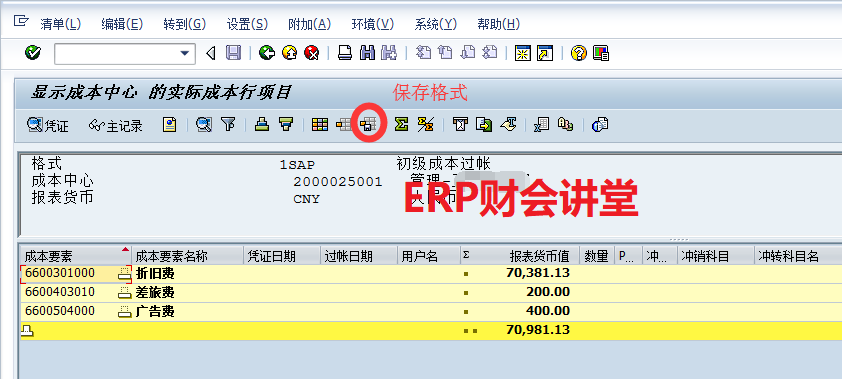 [点晴模切ERP]SAP系统财务管理查询成本中心费用明细