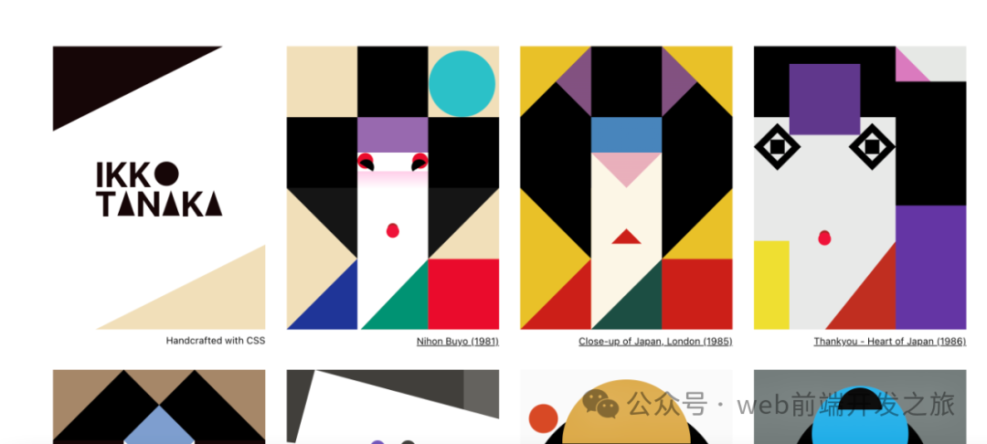 向设计大师致敬以日本平面设计师田中一光的作品为灵感,这个案例通过CSS网格与裁剪路径技术重现了他的多边形艺术风格。这种设计不仅是对大师的致敬,也展示了高级CSS技巧的运用。 源码: https://codepen.io/yuanchuan/pen/MQEeJo