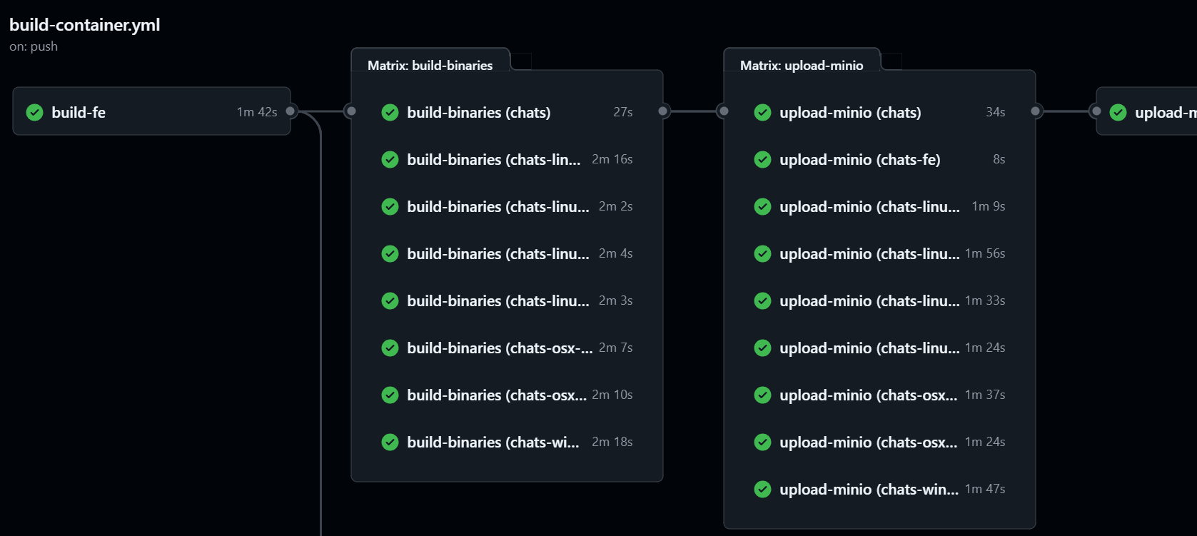 对于不方便使用 Docker 的用户,Sdcb Chats 提供了可直接运行的二进制文件。我们通过 GitHub Actions 的 Matrix strategy,自动编译了 8 种不同操作系统或平台的 Native AOT 编译版本。对于不便使用 Docker 部署的环境,Chats 提供了 8 种操作系统或架构的直接部署选项,您可以从以下链接获取相应的编译包: