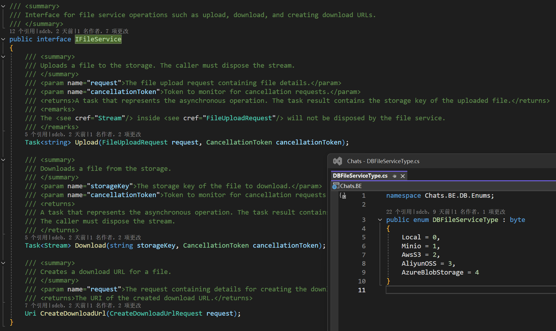 Chats 的后端使用 Entity Framework Core 访问数据库,支持: