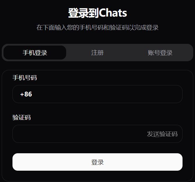为方便国内用户,Chats 支持手机号码验证码登录,提升用户体验和安全性。