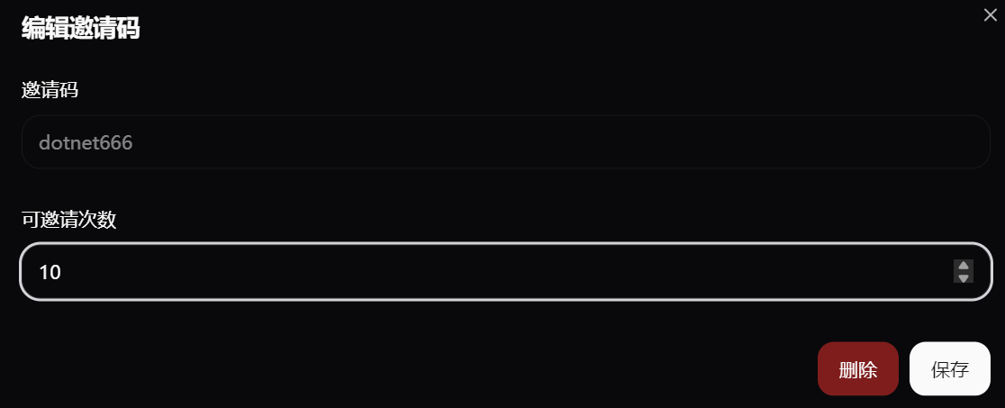 如果您不想开放注册,可以使用邀请码机制。邀请码可以限制邀请次数,初始赠送金额,以及模型、token 数、使用次数和过期时间等。