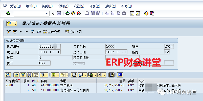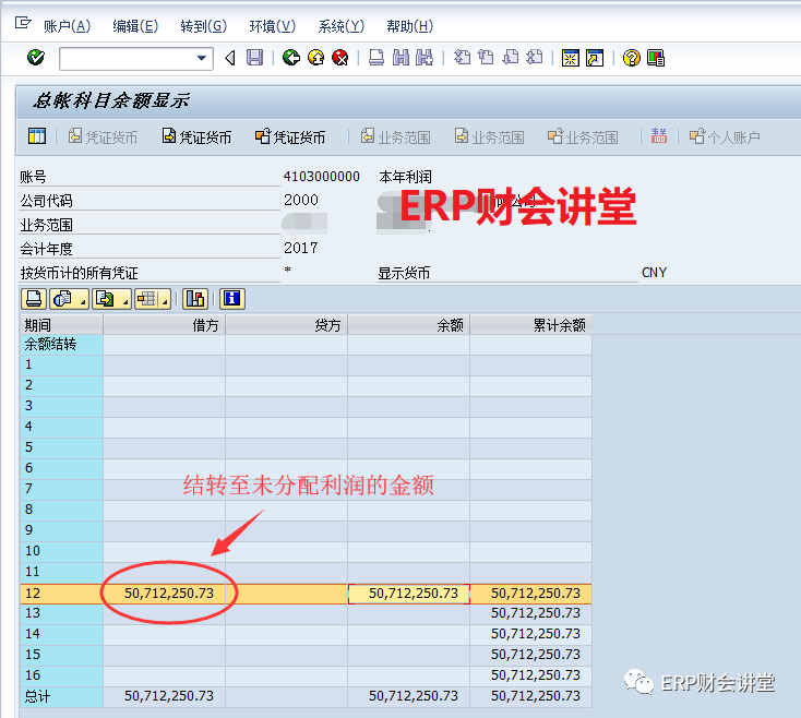 对于国产财务软件,月末或年末需要将各损益类科目的余额结转至“本年利润”。而SAP不需要每月结转利润,只需年末结转一次利润即可。 你可能会疑惑不结转利润,每月怎么出具利润表呢?这其实也简单,根据科目取数,计算即可得到当月利润。 搭建SAP系统时,我们会在后台配置一个损益结转科目,即本年利润科目。 例如,2017年某公司各损益类科目的余额为50,712,250.73,即净利润。 年底结账时,需要F-02手工将本年利润结转至“利润分配-未分配利润”科目, 这样在2017年底本年利润科目的余额为借方数,如下图。 在执行FAGLGVTR结转余额时,SAP会将所有损益类科目的余额,以及“本年利润”科目的余额结转到“本年利润”科目的次年年初余额,由于二者相等,这样“本年利润”科目次年年初余额为0。 SAP采用的是表结法,不生成财务凭证,直接将损益类科目的余额结转到本年利润科目的次年年初余额。需要注意到是,如果资产类科目维护错误,选择了损益科目,也会将对应的余额结转到本年利润科目。 点晴模切ERP更多信息:http://moqie.clicksun.cn,联系电话:4001861886 该文章在 2024/12/17 12:23:59 编辑过 |