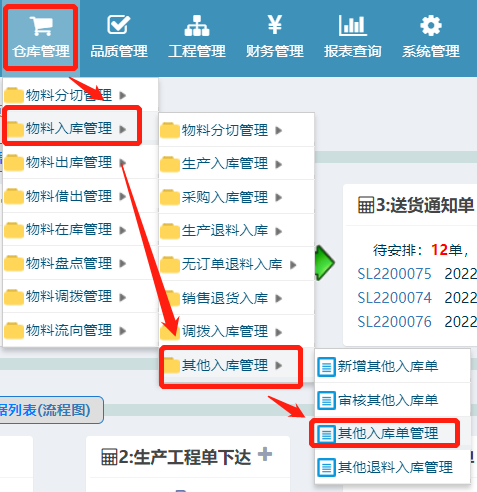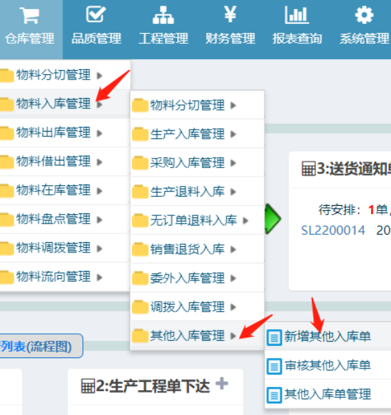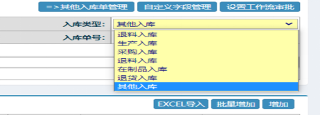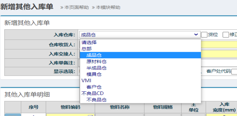 ![]() ![]() 1. 在”仓库管理--.物料入库管理-->其他入库管理-->新增其他入库单”,点击打开