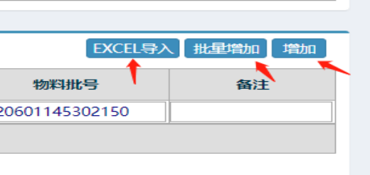 6. 点击”增加”,可添加多行,点击”批量增加”,可勾选增加,”excel导入”按一定的模板填写导入