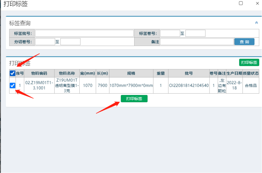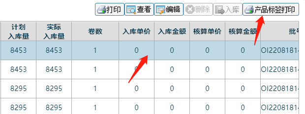 9. 找到刚刚录入的信息,点中后再点击产品标签打印 如下图: