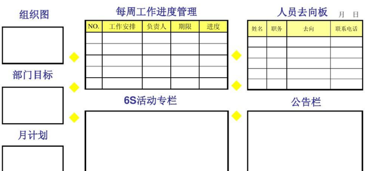 - 推动改进:包括改进建议,鼓励员工提出并讨论持续改进的方法,提高生产效率和质量。