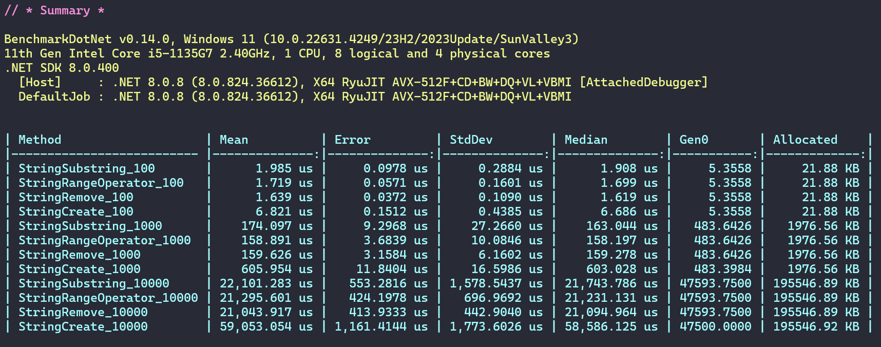 | C#.net core 基础 - 删除字符串最后一个字符的七大类N种实现方式以及性能测试