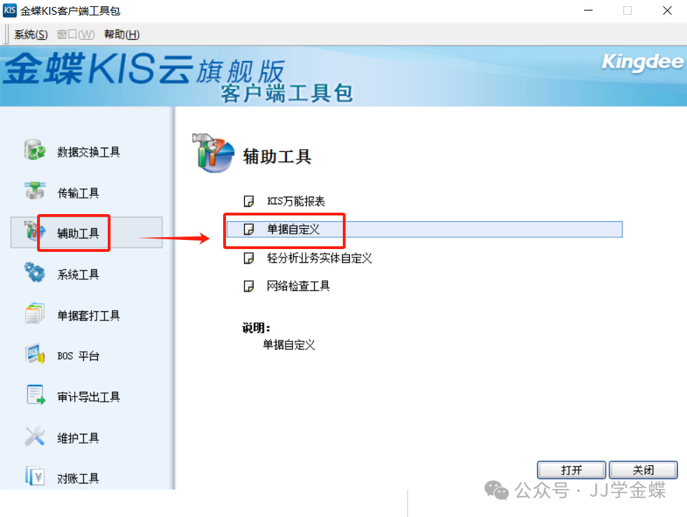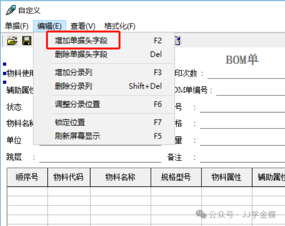 前不久有KIS旗舰版的客户反馈给我,他们在禁用物料时在BOM维护界面不能直观的看到是什么原因反使用BOM,每次都需要去物料信息查看物料状态才弄清楚是物料禁用了。问我有没有快捷的办法不用这么麻烦。      经过一番研究以后顺利实现这个客户的需求,现将解决分享一下:      1、打开【客户端工具包】-【辅助工具】-【单据自定义】,使用具有操作权限的用户登录后打开BOM。