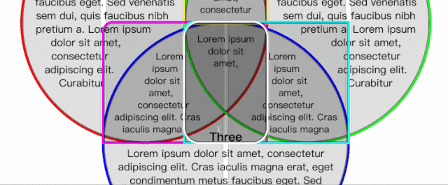 谁不喜欢一张有趣的 Venn 图呢?这个 Venn 图完全使用 HTML 和 CSS 构建,结合了 CSS Grid 布局和 shape-outside 属性,使得文本完美地适应容器的形状。通过滚动页面,还可以查看各个容器的具体构建方式。