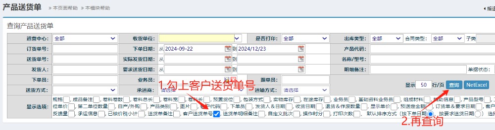 ![]() ![]() 点击进入 如下图 勾上客户送货单号,再查询 如下图: 点击对应的框,直接修改即可 如下图