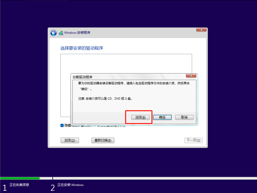 在系统安装页面检测不到硬盘(如下图),且BIOS可以看到硬盘,已确认硬盘并无故障,说明此机器支持RST模式或含傲腾硬盘,因此系统安装页面需要加载RST驱动;