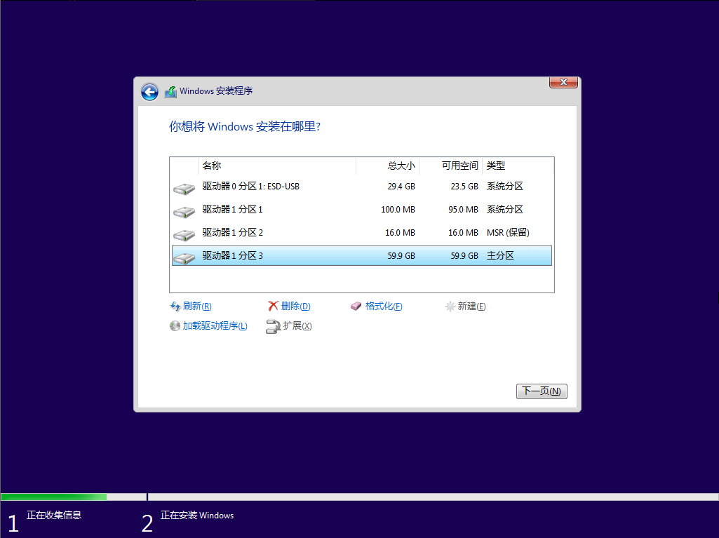 成功加载后将自动返回安装页面,此时即可看到硬盘对应分区