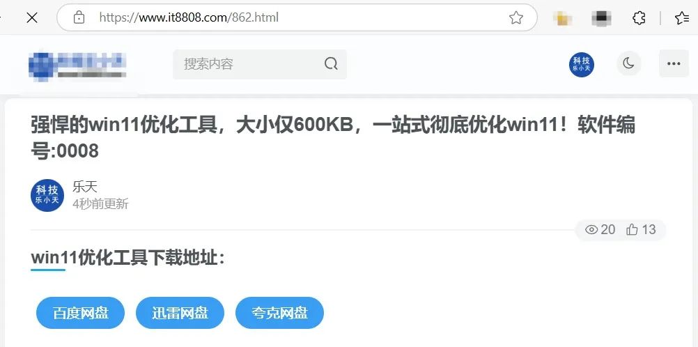 | 强悍的win11优化工具,大小仅600KB,一站式彻底优化win11!