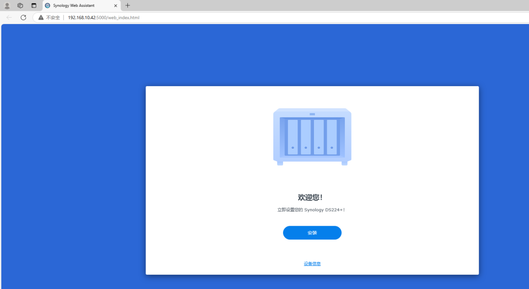 当我们点击系统未安装, 这时就会跳转到网页,通过网页来完成,NAS设备的操作系统的联网安装,这时要保证NAS设备是可以正常上网。 这时我们直接点击安装。