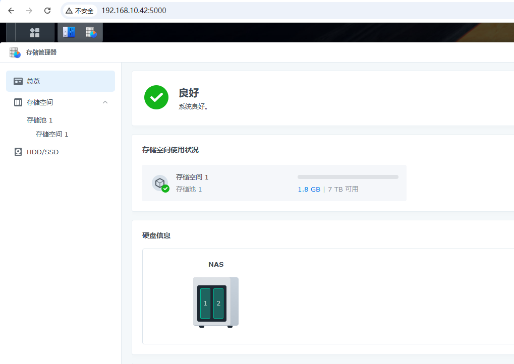 这时NAS设备的存储空间就划分好了,两块硬盘都已经添加完成,做的是RAID1。