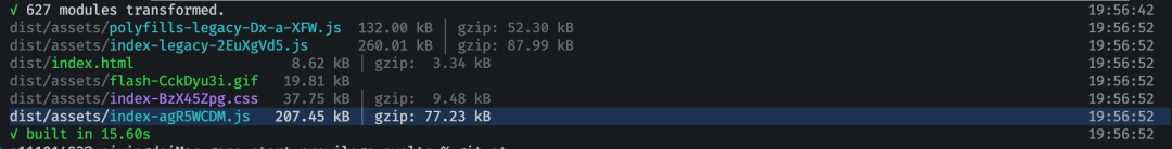 这样一来,整个 Vite + Svelte 的项目结构就搭建好了,开箱即用。整个项目的目录结构如下: 左右滑动查看完整代码 可以看到,整个项目结构基本和 Vue 类似,只是组件的后缀名改为了.svelte,新增了 vite.config.js 和 svelte.config.js 两个配置文件。 3.4 配置 Vite+Svelte 支持开箱即用,项目的初始配置也很简单,没有任何额外配置。 vite.config.js:用于配置 Vite 构建工具的行为,例如入口文件、输出目录、插件、devServer 等。 左右滑动查看完整代码 svelte.config.js:用于配置 Svelte 项目的各种选项,例如别名、预处理器、插件等。 左右滑动查看完整代码 在工程配置这里,唯一需要注意的是,Vite 默认情况打出的包体仅支持现代浏览器(支持 ESM ),如果要兼容低版本浏览器,可以使用官方提供的 @vitejs/plugin-legacy插件: 左右滑动查看完整代码 更多配置项可参考官网的 Vite 配置文档和 Svelte 配置文档。 四、开发体验优化 项目搭建完成后,后续就是根据业务需求来开发 Svelte 组件和完善业务逻辑。整个开发过程中,体验感还是不错的。 详细的开发流程不再赘述,想要了解更多关于 Vite 和 Svelte 内容,可以参考 Vite 官方文档和 Svelte 官方文档。这里我们主要来看看 Vite 和 Svelte 分别在开发体验上带来的一些优化。 4.1 Vite 的开发体验太棒了 首先,Vite 的开发体验太棒了。它的构建速度极快,对开发效率有很明显的提升。 在开发环境下,Webpack 每次都需要对改动的部分进行重新编译打包,耗时几秒钟,而 Vite 则不需要重新打包,只需要把更新后的 ESM 代码交付给浏览器就ok,几乎是即时更新。 同时在构建生产环境包时,也明显比原先的 Vue 项目要快了近50%。别小看这一点速度的提升,让整个开发体验好了不少。 4.2 Svelte 的语法更优雅? 如果你跟随上面步骤搭建了项目,那你可以打开项目中的 Counter.svelte 文件看看,会发现 Svelte 组件的基本结构和 Vue 几乎一致,也是由 script、template 和 style 三部分组成,唯一的差异在于 Svelte 中不需要像 Vue 一样额外使用来作为 DOM 结构的根标签。 左右滑动查看完整代码 在语法上,Svelte 和 Vue 也非常相似,但个人更喜欢 Svelte 的一些简洁的语法设计,举一些例子: 插值表达式:Svelte 的插值表达式只需要单个{},而 Vue 则需要两层{{}},并且 Svelte 还有一些简写语法,例如 src={src} 可以简写为 {src}。 响应式:Svelte 声明的变量直接支持响应式,而在 Vue 中则需要使用 ref 来声明。