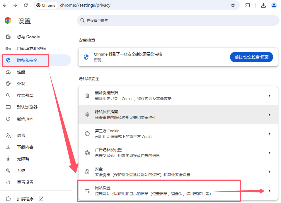 - 找到隐私和安全选项: