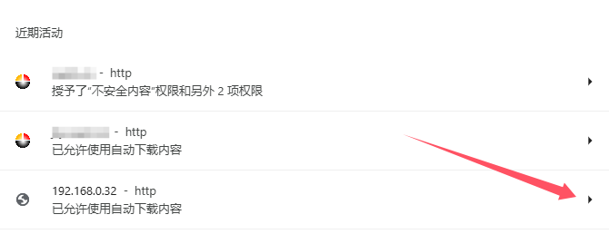 打开谷歌浏览器,进入:设置-》隐私和安全-》网站设置,在近期活动中,找到你的网站: