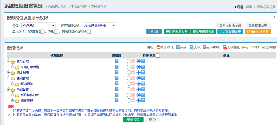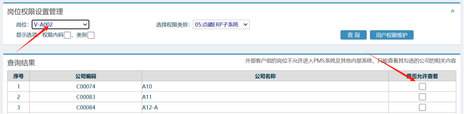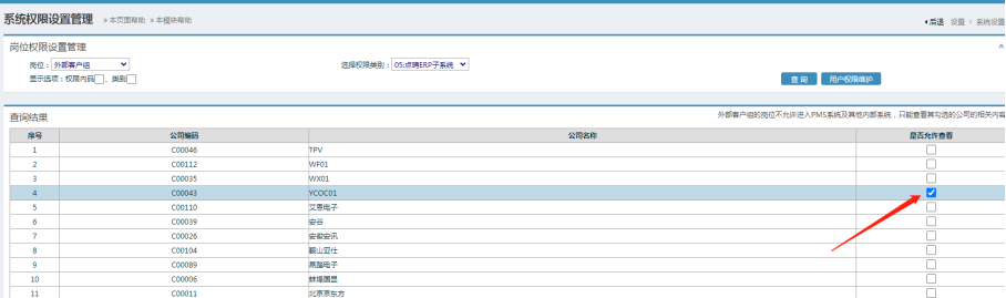 ![]() 4、设置外部菜单权限 操作步骤:ERP-系统管理-用户管理-用户权限维护,如下图,注意选公共查询平台 ![]() 点晴模切ERP更多信息:http://moqie.clicksun.cn,联系电话:4001861886 该文章在 2024/12/27 11:36:32 编辑过 |