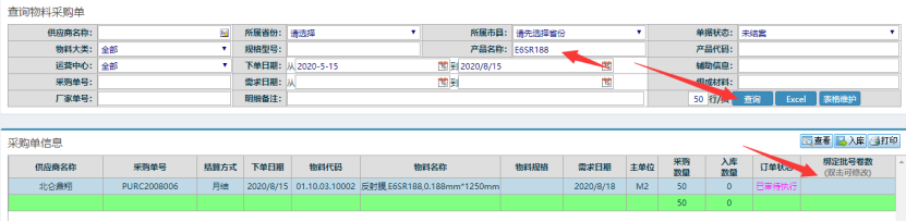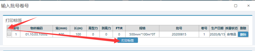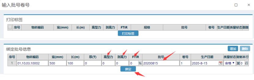 ![]() ![]() 1、登陆系统-业务查询-采购入库计划 ![]() 2、进入页面后录入名称搜索找到对应的采购单明细-双击点击“绑定批号卷数”栏位 ![]() 3、双击后进入到标签制作页面-录入好品质信息-填上批号点击“绑定”按钮 ![]() 4、绑定后选择对应的明细点击“打印标签”按钮进行打印 ![]()