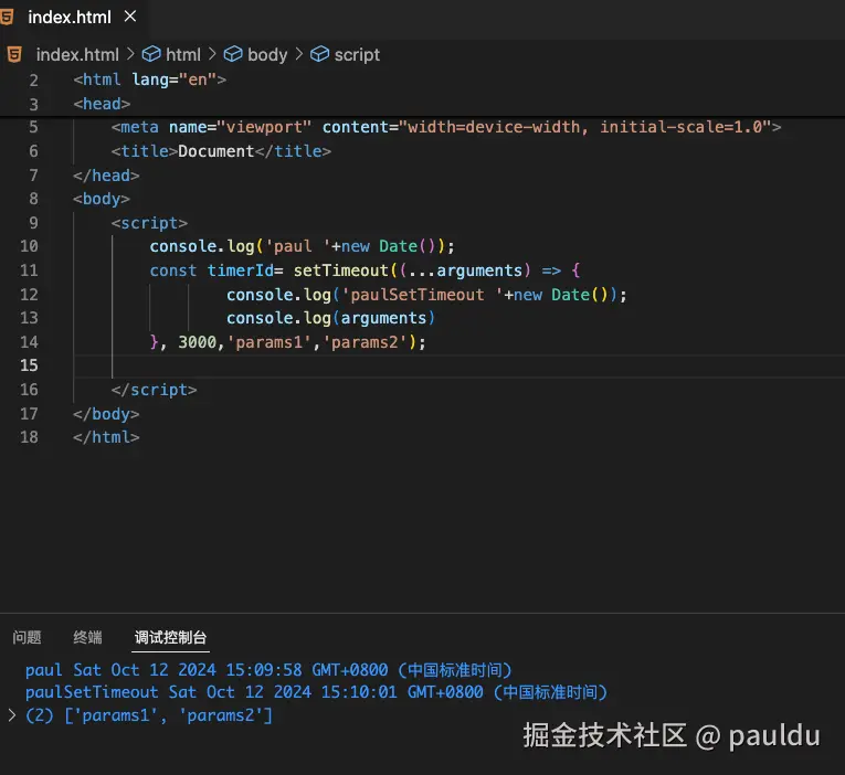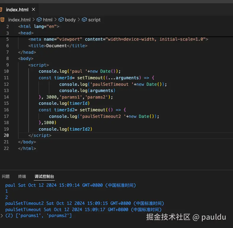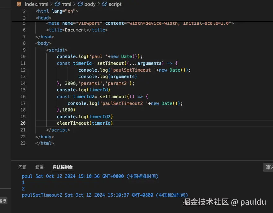 返回值 timeoutID 是一个正整数,表示由 setTimeout() 调用创建的定时器的标识符。可以将这个值传递给 clearTimeout() 来取消该定时器。
