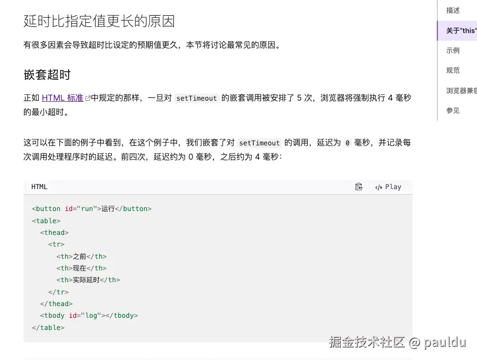 嵌套多次的时候会有4ms的延迟(可以点击下方的例子进行测试)