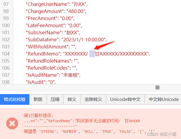 列表数据有时候突然显示空白,检查有返回数据,但是转JSON时候出错了,去检测发现原来是有Tab键特殊字符,要如何修改数据呢?