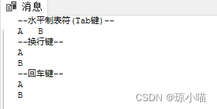 PRINT '--水平制表符(Tab键)--'