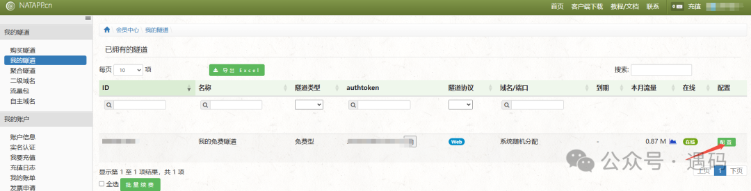 在natapp客户端同目录下创建一个配置文件 将上文中提到的authtoken粘贴过来即可,其它配置项保持不变。