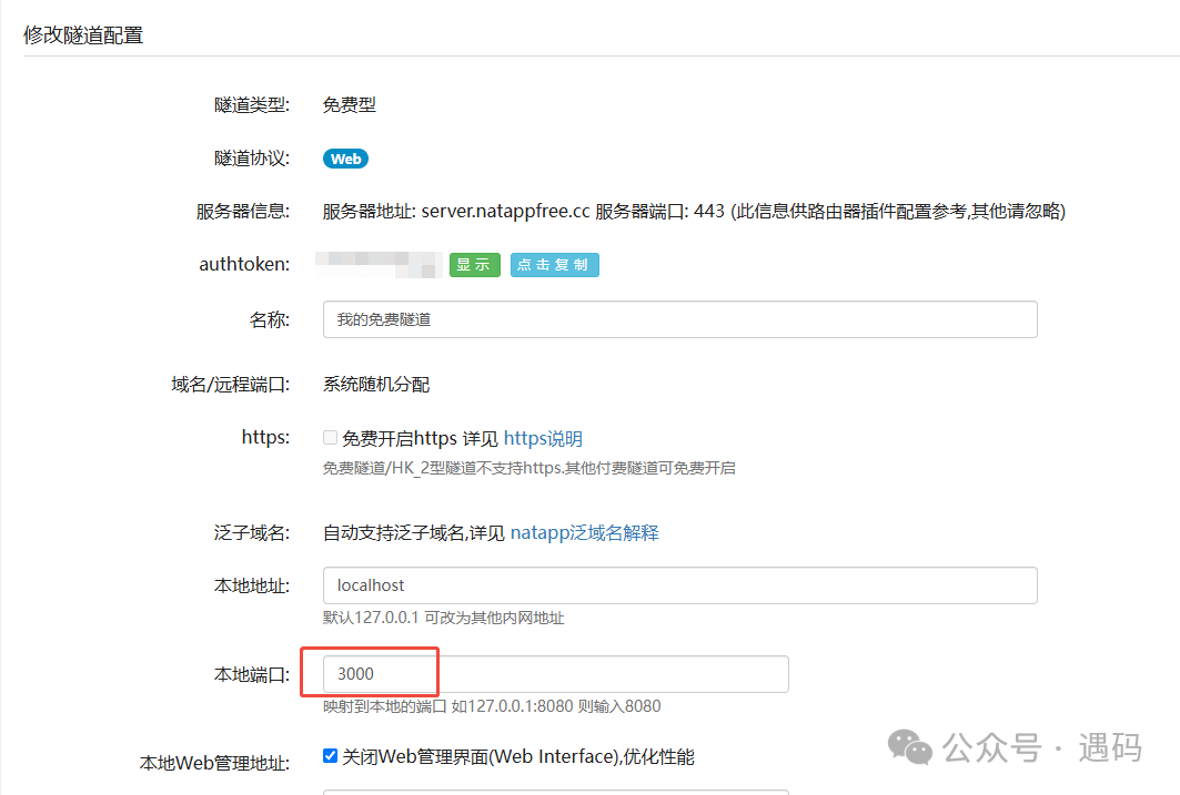 authtoken是密钥,要注意保密,后面我们需要用到。 本地端口填写本地可用的端口,比如:8080