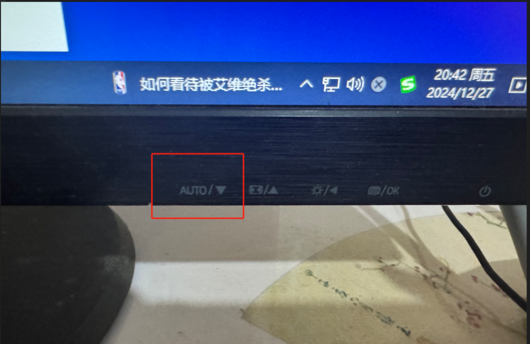 可以看到,我的显示器,Auto的意思就是自动调整显示器。按Auto之后,显示器就会自动调整一些参数设置,来达到和电脑最佳的显效果,它会自动识别分辨率、水平位置和垂直位置,当有的显示器桌面的图标都溢出显示器了,这时也可以通过按Auto键解决。 Auto它还可以解决显卡输入的频率和相位,有的时候连接显示器后,显示画面不清楚,无论怎么调试分辨率,总感觉还有点模糊,也可以按Auto键来解决。 还有的时候,显示器的颜色,色差看着有点问题,不是很明显的全红,如果有很明显的背影全红、全蓝、全绿,那基本上是连接的显示器的线松了或者有问题。色差也可以通过AUTO键来自动调整 ,可以看出来显示器的AUTO键,还是有很强大的功能的吧!