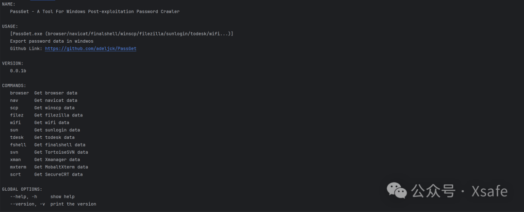 PassGet后渗透工具-懒狗的Windows终端密码信息获取