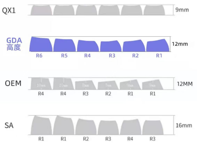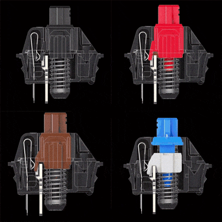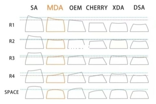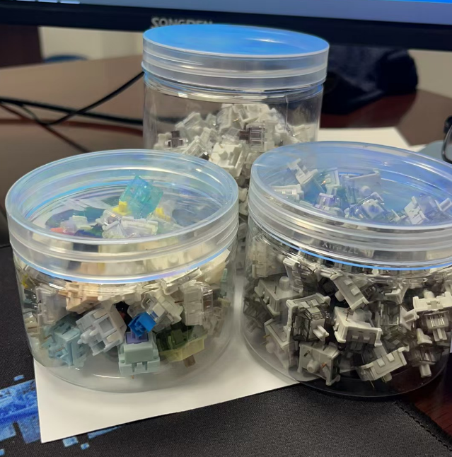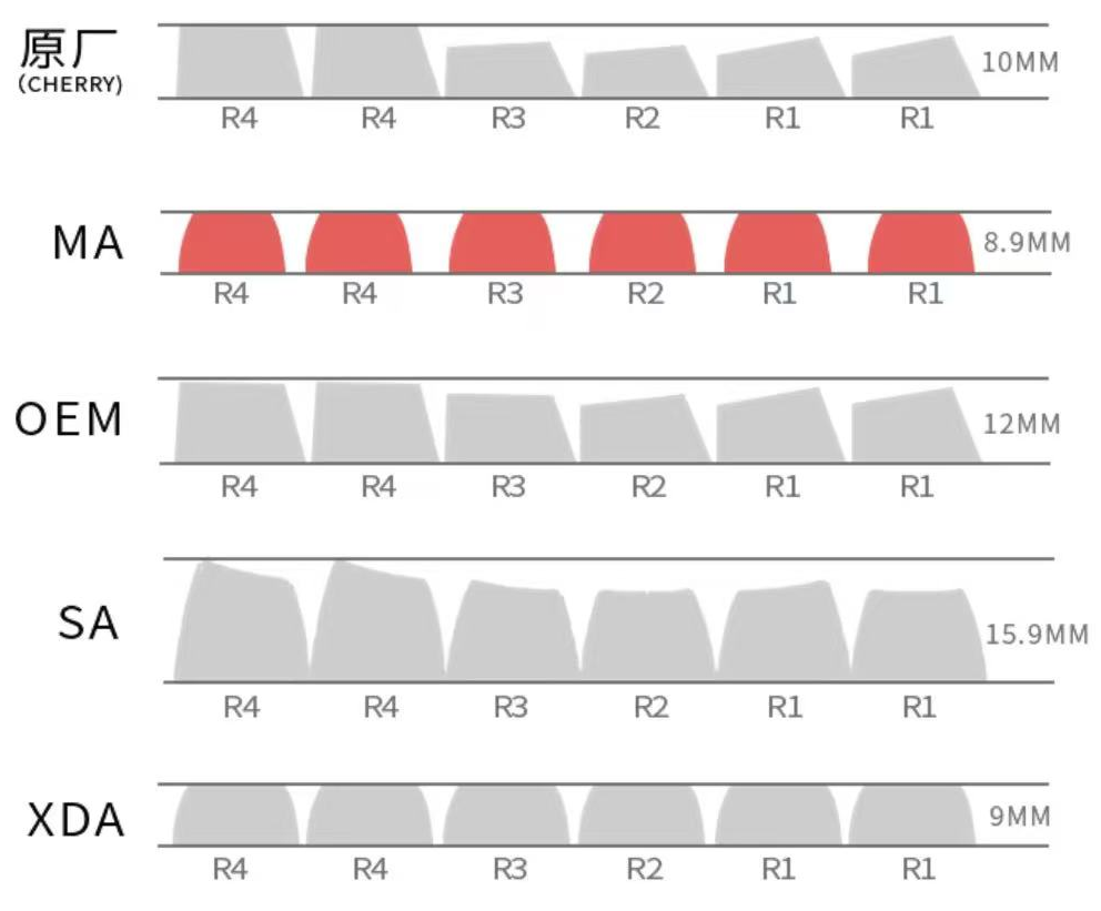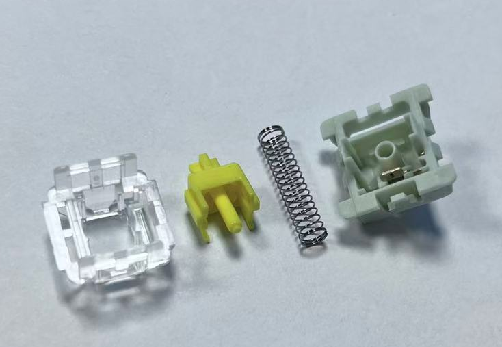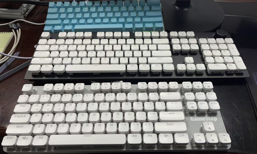 机械键盘是德国Cherry(樱桃)公司于1973研发的。键盘上的每个键相当于一个开关,也就是所谓的“轴”,Cherry于1983年推出了著名的MX轴(十字轴)。MX轴后来成为机械键盘领域的工业标准,以其稳定性和多样化的触感闻名。黑轴为线性轴,青轴为段落轴,茶轴和红轴是介于黑轴和青轴之间的轴体。线性轴可以简单理解为里面就一根弹簧,压下去弹起来,受力均匀。段落轴则压到一半会突然受力消失,触发到弹片后键会突然落下,受力是分阶段的。黑轴的弹簧反弹力量最大,反馈及时,适合打游戏。青轴需要的手指力量比黑轴小,按下一半就卸力了,适合打字。青轴声音大,黑轴声音小,茶轴和红轴介于黑轴和红轴之间。有些轴体中间还会注入润滑油,整个轴体腔是密封的,不会漏油。拆轴体时注意准备擦手纸,轴体使用卡扣结构,徒手就可以拆开。早期的机械键盘比较贵,以 Cherry MX2.0C G80-3802 为例,这款无灯、有线的机械键盘当年售价¥459。而现在的键线分离、带RGB灯光、三模连接(有线、2.4G无线、蓝牙)的国产机械键盘已经把价格打到百元以内了。十字轴的设计使得键帽是可更换的,根据键帽高度、材质衍生出了海量的替换方案。根据键帽高度可分为原厂高度(Cherry原厂),OEM高度(代工厂),以及XDA、MDA、DSA等高度。不同的键帽高度会产生不同的手感,习惯了一种键盘高度,换另外一种需要一段时间习惯。定义一颗字母键帽的宽度为1u,根据不同键的宽度常见的键帽宽度为 1u、1.25u、1.5u、1.75u、2u、2.25u 和 2.75u。全尺寸键盘有104键;去掉数字小键盘的17键,则为87键;再去掉4颗方向键和9颗功能键,还剩74键;再去掉13颗F区功能键,还剩61键。这种键的组合被称为配列,常见的有104配列、87配列、61配列。根据不同的配列,键帽分为大全套和小全套。小全套已经覆盖了常用的104键、87键、61键,大全套主要是为了覆盖非常规的68/98/108配列的增补键,比如变小的数字键 0 ,特殊长度的 ctrl/shift/alt 键。配列决定了键盘布局以及键帽尺寸,而键帽材质决定了透光性、工艺、样式,从而影响键盘的手感、耐用性和外观。常见的键帽材质有 ABS、PBT、POM、PC等。